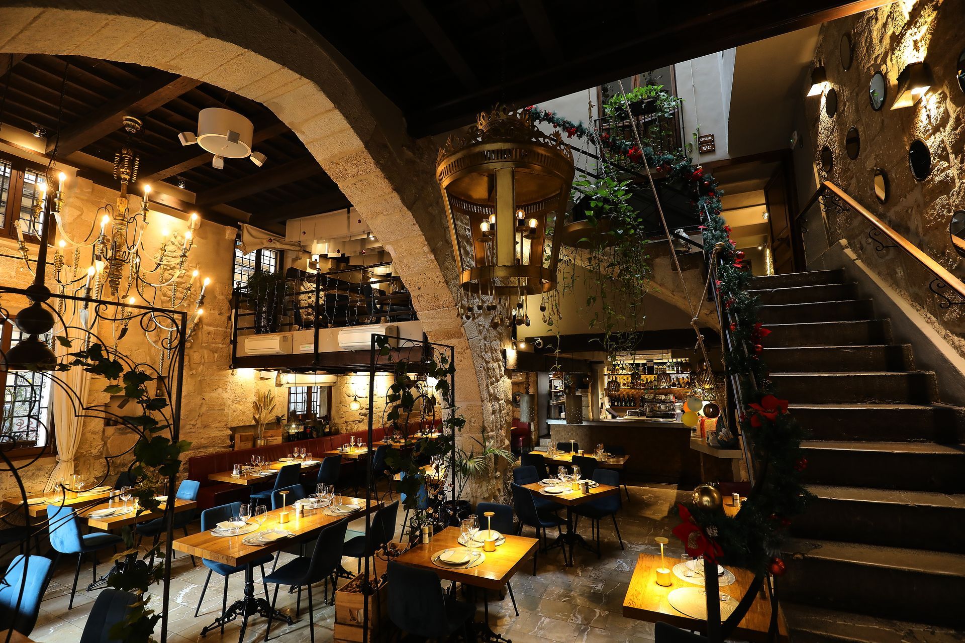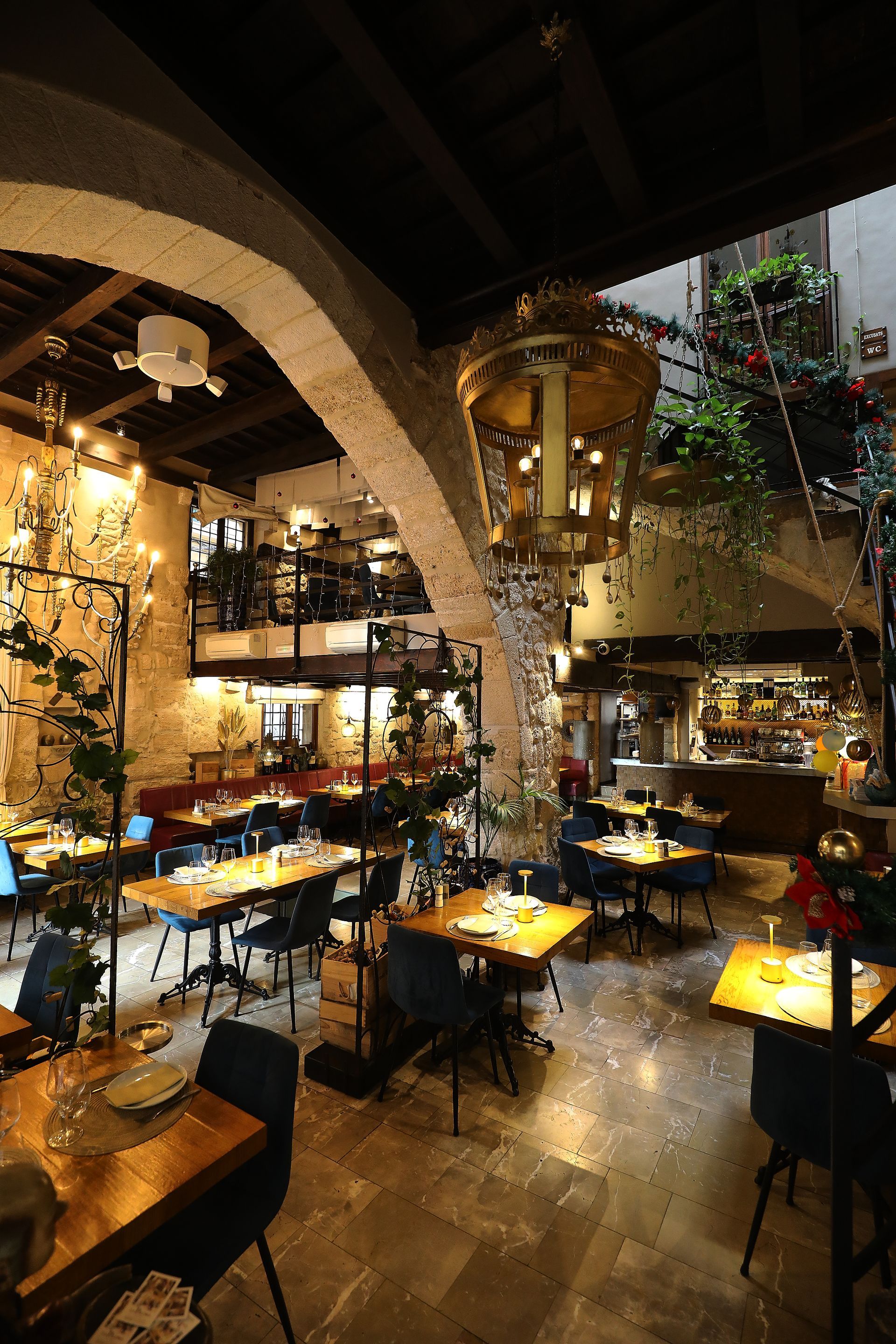 Ein Restaurant in La Lonja auf Mallorca bietet ein gastronomisches Erlebnis in einem historischen mittelalterlichen Ambiente und ist auf spanische Küche spezialisiert, die Fleischstücke, Fisch und Tapas umfasst.